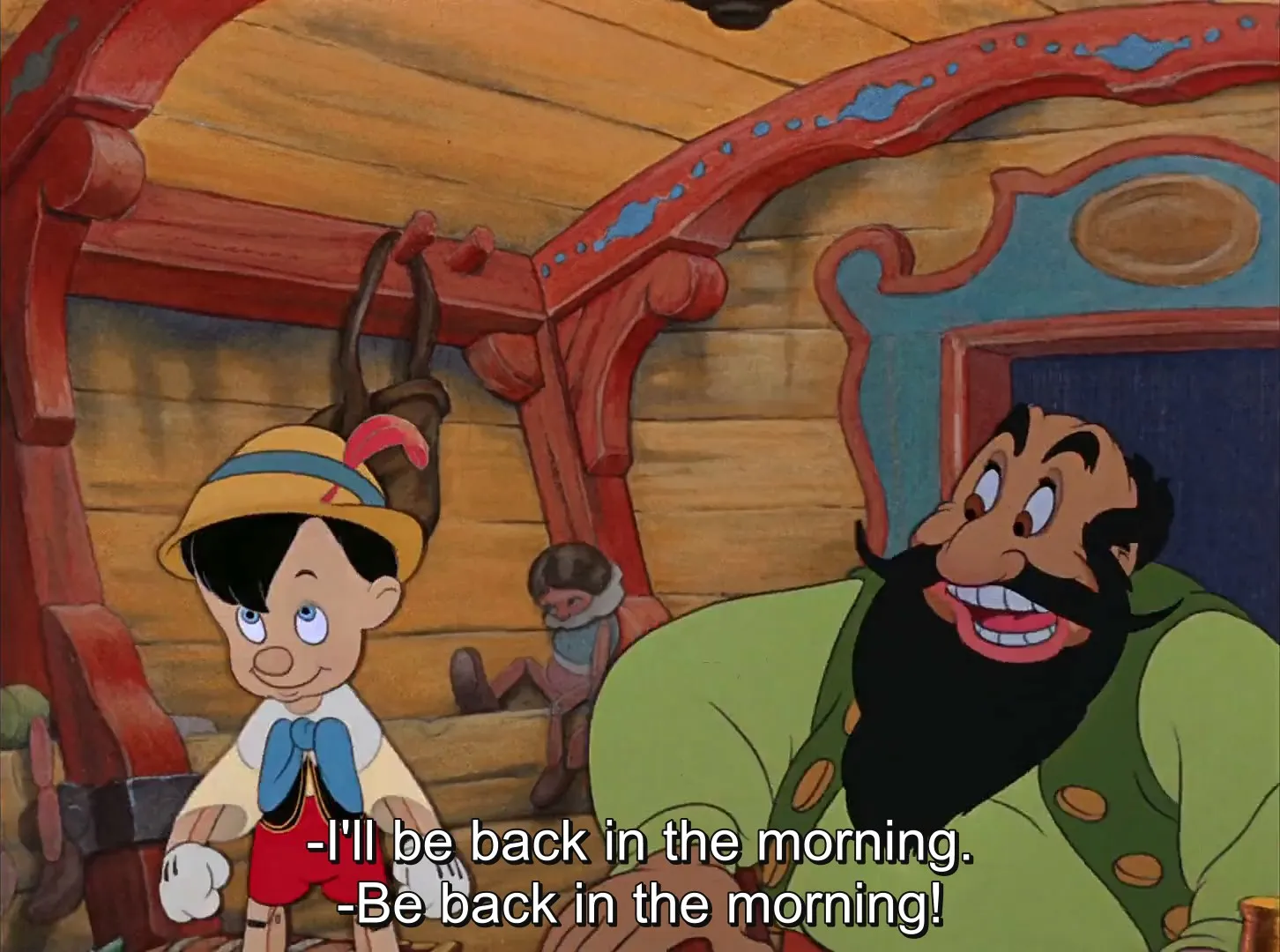 Cast: Dickie Jones as Pinocchio / Alexander (voice) (uncredited), Cliff Edwards as Jiminy Cricket (voice) (uncredited), Christian Rub as Geppetto (voice) (uncredited), Evelyn Venable as The Blue Fairy (voice) (uncredited), Walter Catlett as 'Honest John' Worthington Foulfellow (voice) (uncredited), Mel Blanc as Gideon (hiccup) (voice) (uncredited), Charles Judels as Stromboli / The Coachman (voice) (uncredited), Frankie Darro as Lampwick (voice) (uncredited), Don Brodie as Carnival Barker (voice) (uncredited), Marion Darlington as Birds (voice) (uncredited), John McLeish as Carnival Barker (voice) (uncredited), Patricia Page as Marionettes (voice) (uncredited), Thurl Ravenscroft as Monstro the Whale (uncredited)